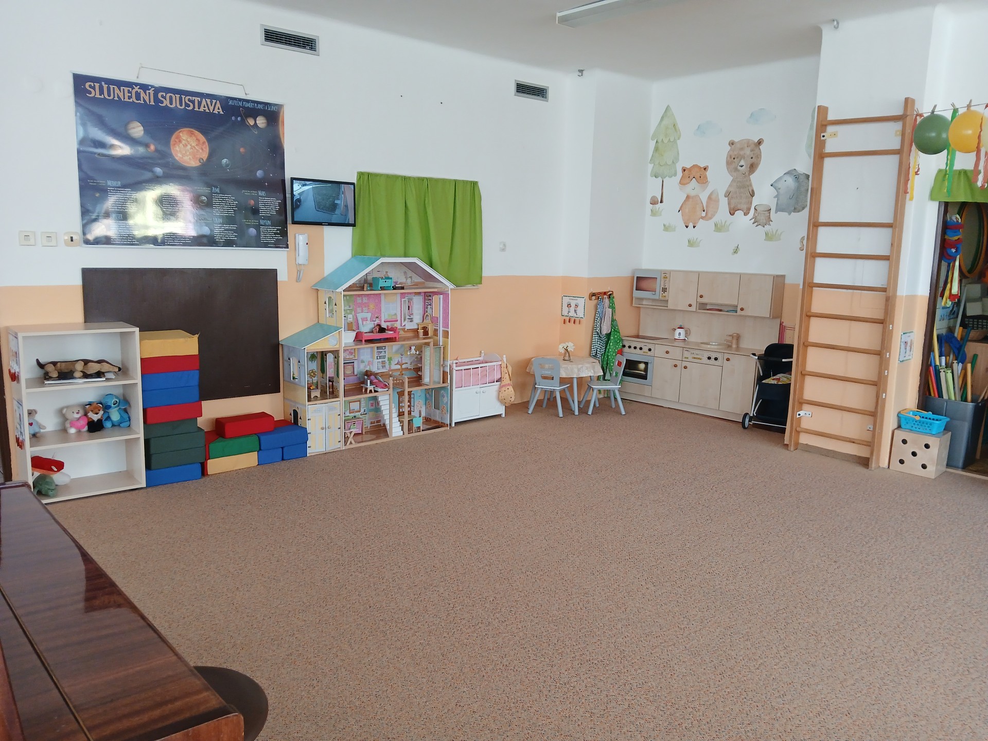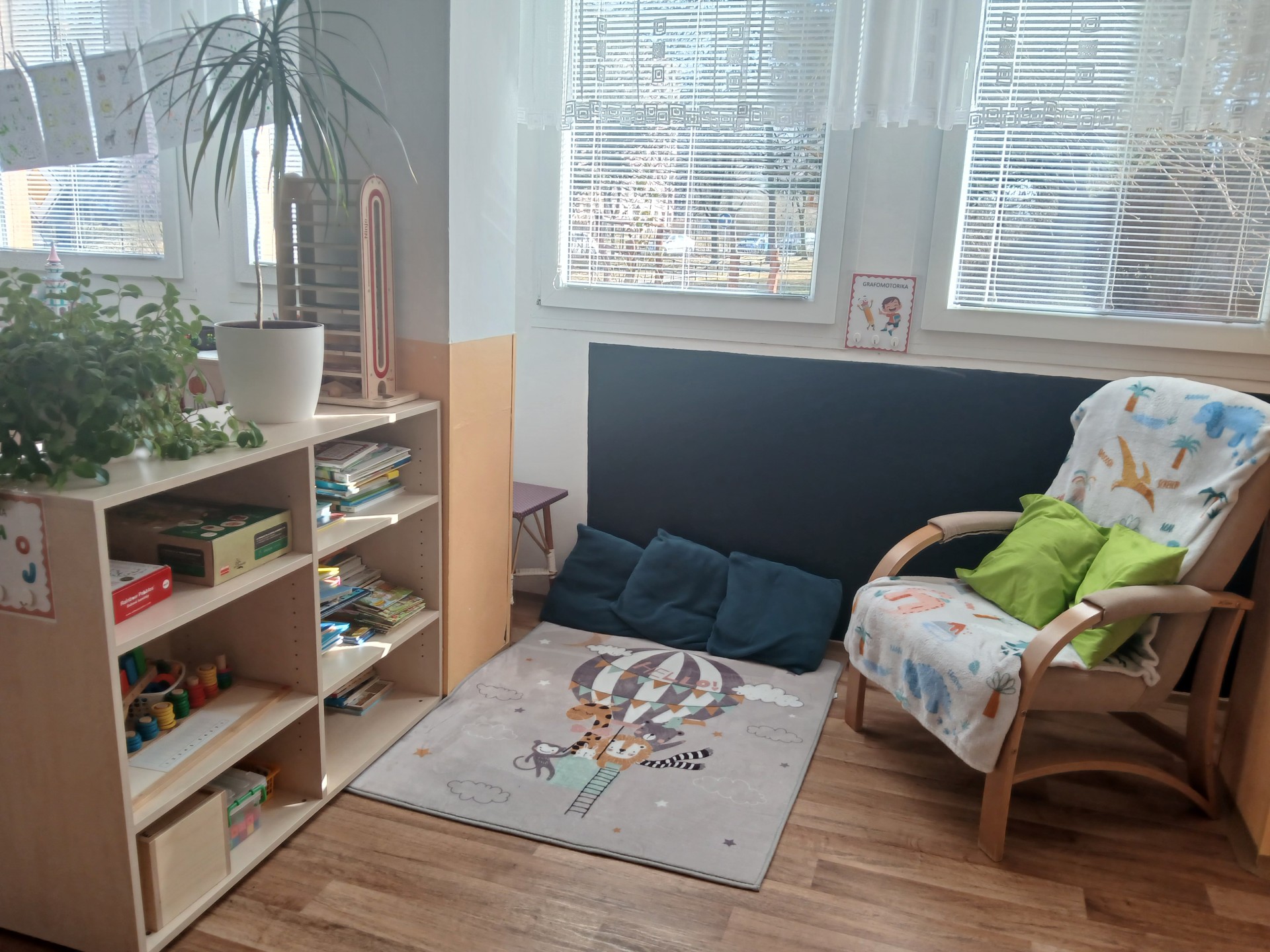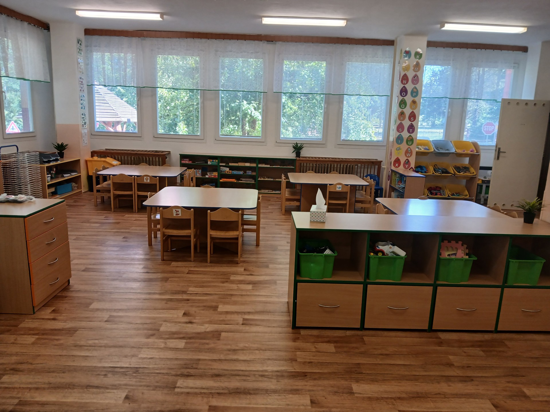 Je účelovým zařízením. Každá třída má zrekonstruované sociální zařízení, dále šatnu, prostory pro individuální i společnou hru učení a práci. Logopedická třída s názvem Zelená má bezbariérový přístup ve všech prostorách, včetně vstupu do šatny a je umístěna v samostatném přízemním pavilonu. V sousedním přízemním pavilonu je Oranžová třída. Ostatní čtyři třídy s názvy Žlutá, Fialová, Modrá a Červená se nachází ve dvou totožných jednopatrových pavilonech.
