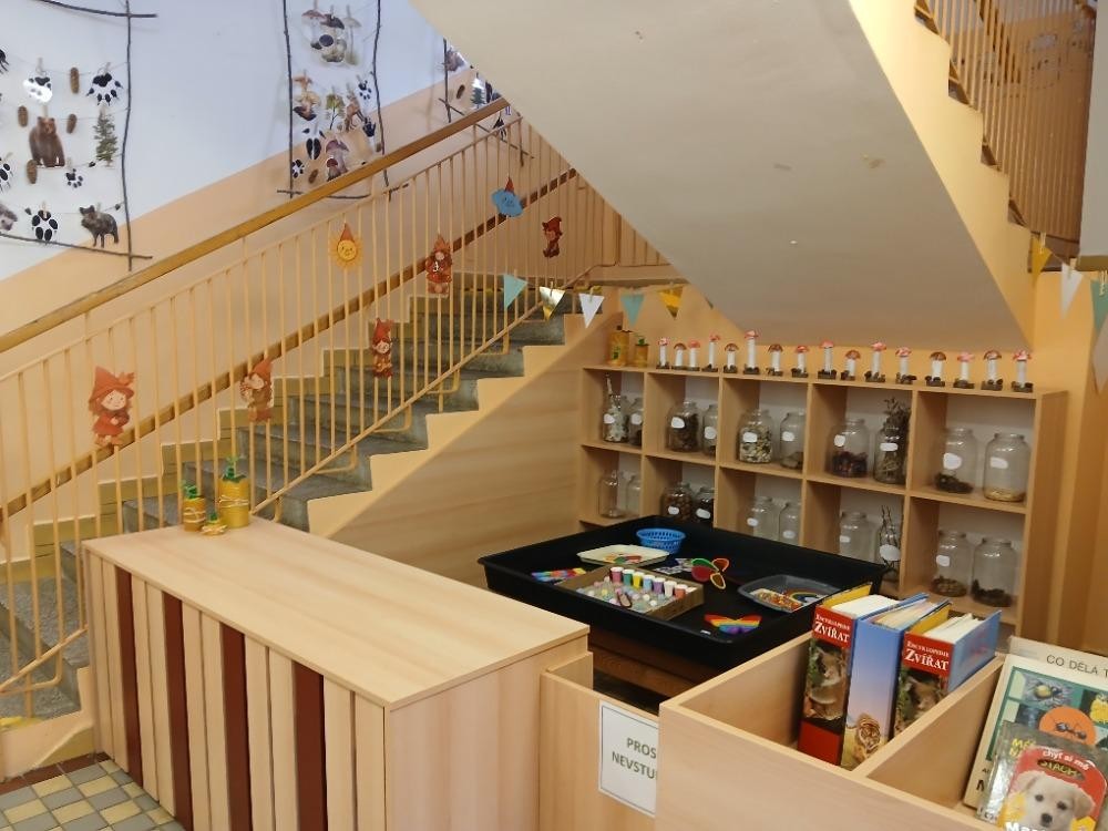 i společnou hru učení a práci. Strava je připravována ve školní kuchyni, hlavní jídlo je pro starší děti servírováno ve společné jídelně, svačiny ve třídách. V hospodářském pavilonu je kancelář vedoucí učitelky, školní kuchyně, a další technické zázemí školy.